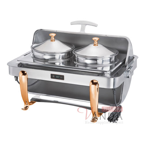 温控镀金全翻盖双头宴会汤炉