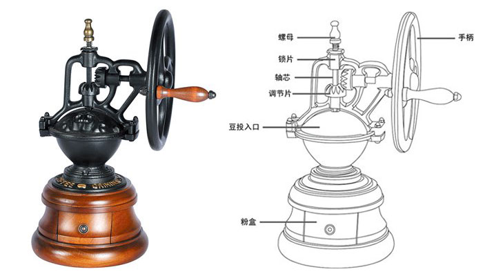 > 生铁打造,美观装饰,把柄设计,磨豆更省力。