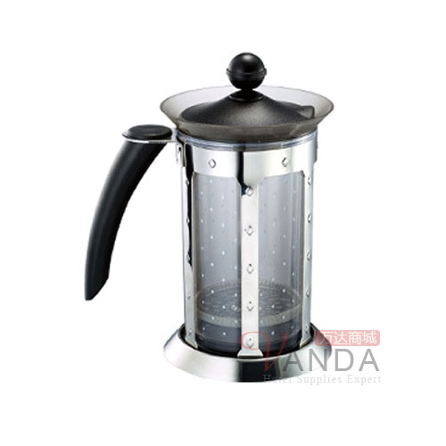 > 壶盖及过滤件:采用304不锈钢和ABS制造,可有效隔离咖啡粉及茶叶,并可用向下快速压过滤网方式使壶内饮料快速均匀混合,时刻保持饮料清香。易于装拆,方便彻底洗。