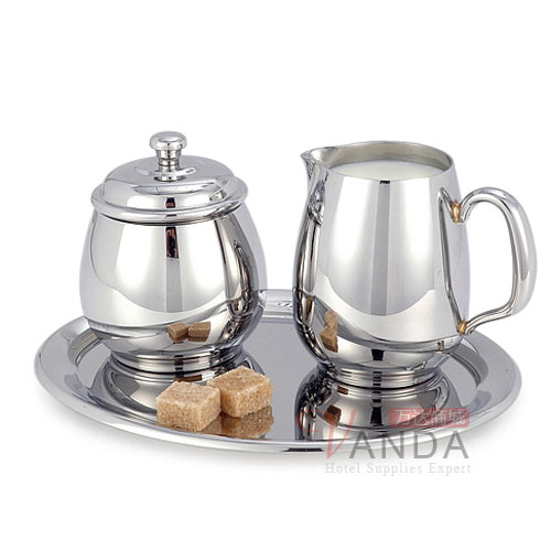 不锈钢糖奶套装+小托盘(奶盅 糖盅)