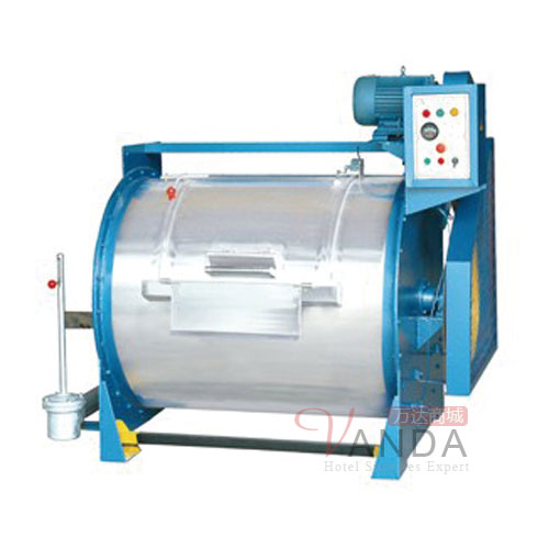 按容量大小分为:10kg、15kg、30kg、50kg、70kg、100kg、150kg、200kg等系列。该设备是滚筒型,内、外壳采用优质不锈钢制作而成,平整光滑、耐腐蚀、不损伤织物。该机由内筒、外筒、电机、支撑总成、传动总成、电器总成组成。结构合理、安装使用方便。工作原理:由顶置电机、三角胶带、带动传动总成,使内筒作正反转运转,通过织物与织物、织物与内筒壁的相互摩擦,达到洗涤效果。机器内置过热、过载装置、定时装置、正反转控制装置。外筒门设有安全装置,若运行中门被打开,机器立即停止运转,确保机器、操作人员的安全。