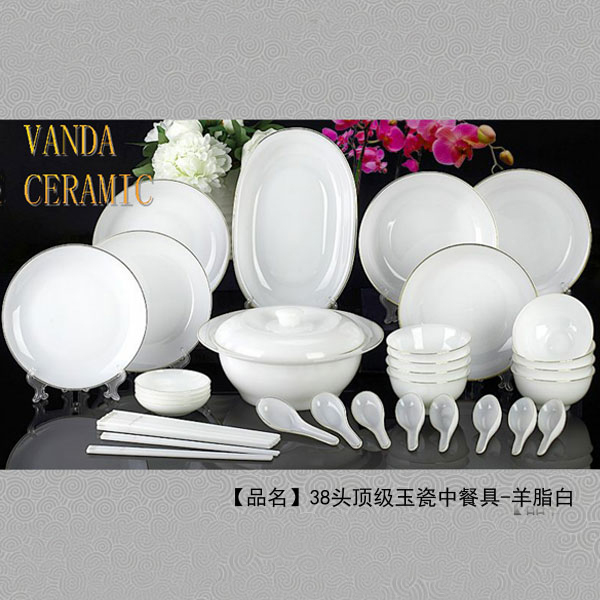 38头顶级玉瓷中餐具 羊脂白